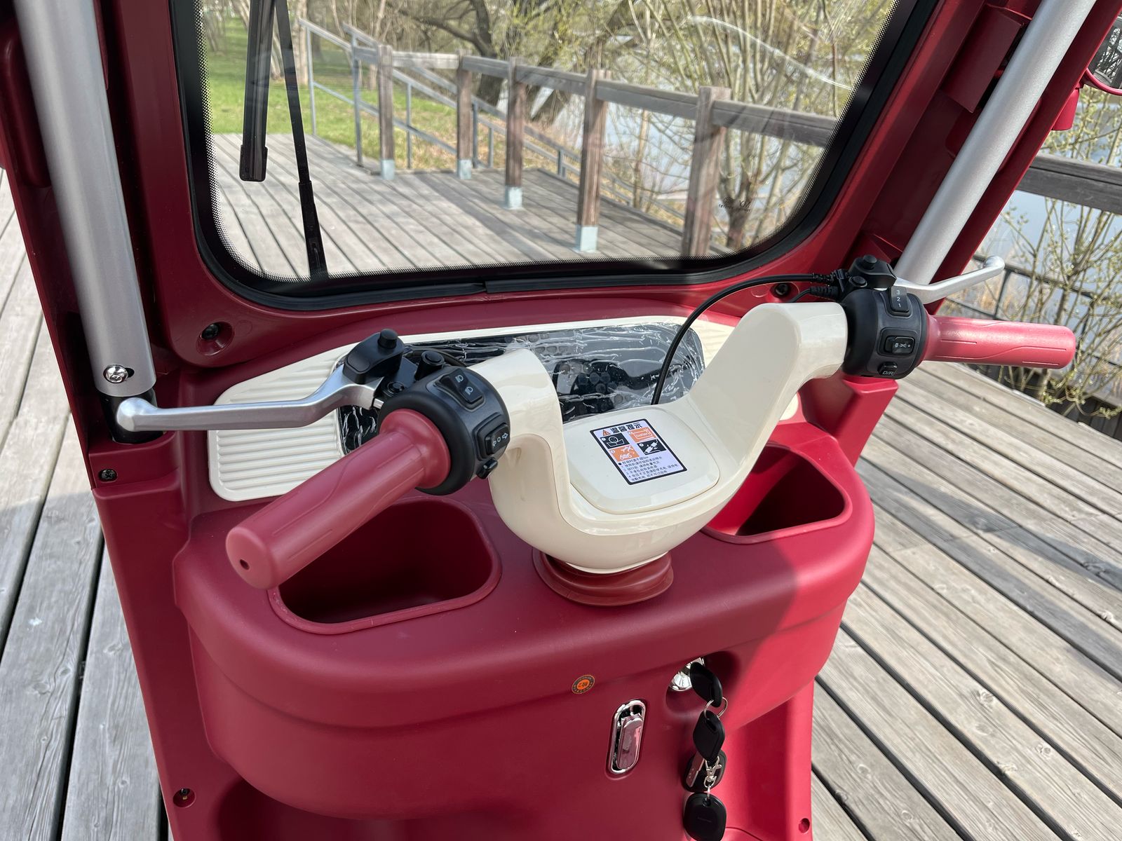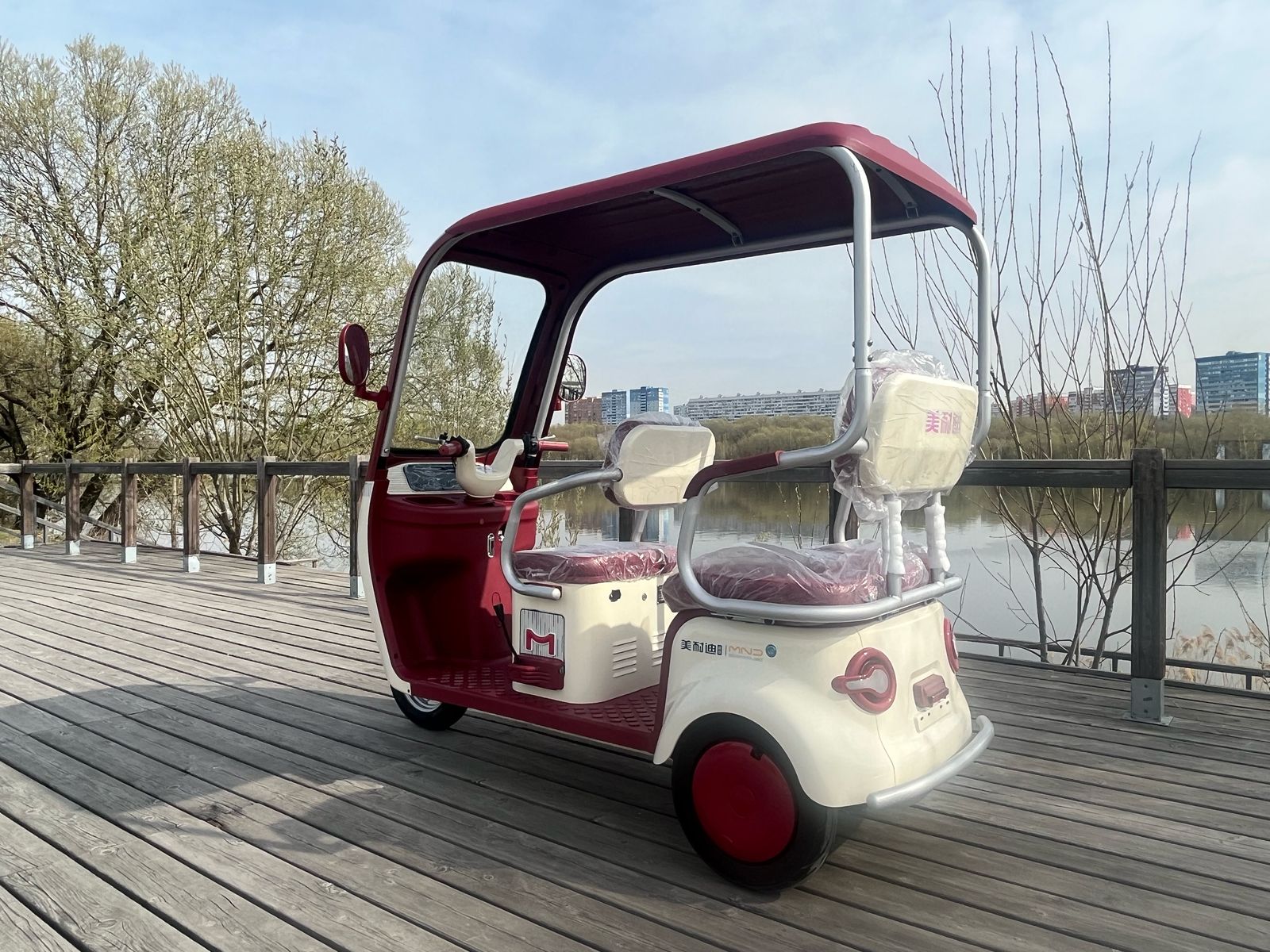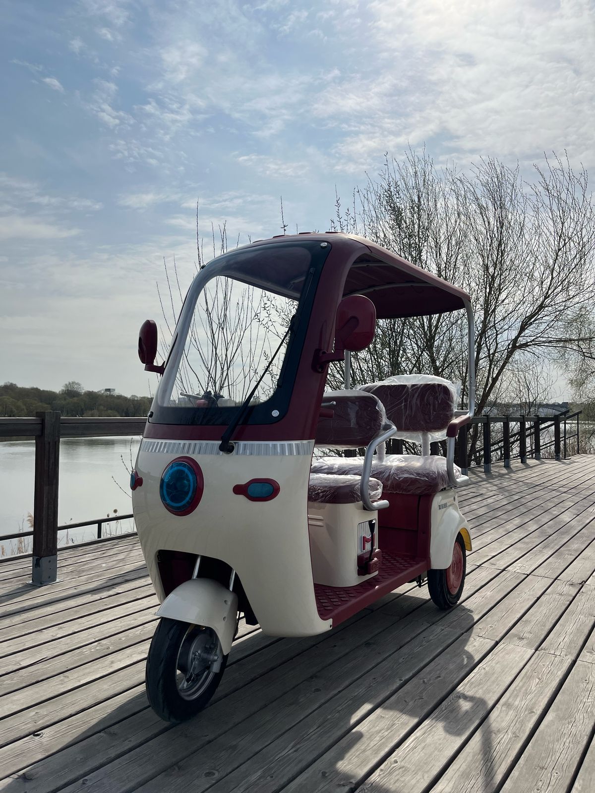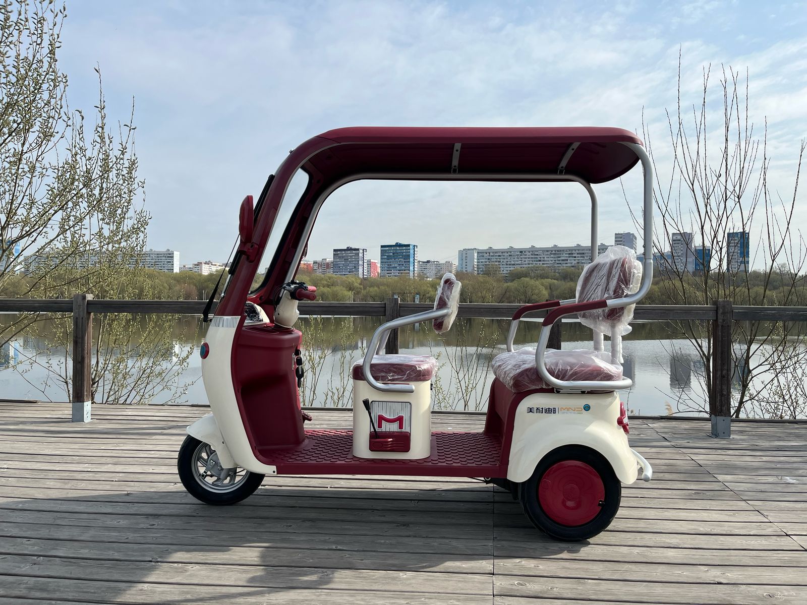 Размер: 2100X860X1700MM. Аккумулятор: 60В/20Ач. Бесшумный электрический мотор 1200W. Покрышка: Бескамерная покрышка, 300-10 стальные диски. Передняя алюминевая гидравлическая вилка, которая обеспечевает плавную и комфортную езду, прочное сцепление с землей и минима скольжения. Контроллер: Беспроводной двенадцати ламповый контроллер. Противоугонная система: Сигнализация с двумя пультами управления. Тормозная система: Передние 110 и задние 130 большие, керамические, барабанные тормоза. Встроенный интелектуальный противоскользящий тормоз. Дисплей: Сверхбольшой цифровой экран, однострочный коммуникационный прибор. Переднее лобовое стекло. Цельная крыша. Встроенные левые и правые подставки для удобного хранения вещей. Мощная LED фара. Рама покаршена методом горячей сушки: кислотная очистка